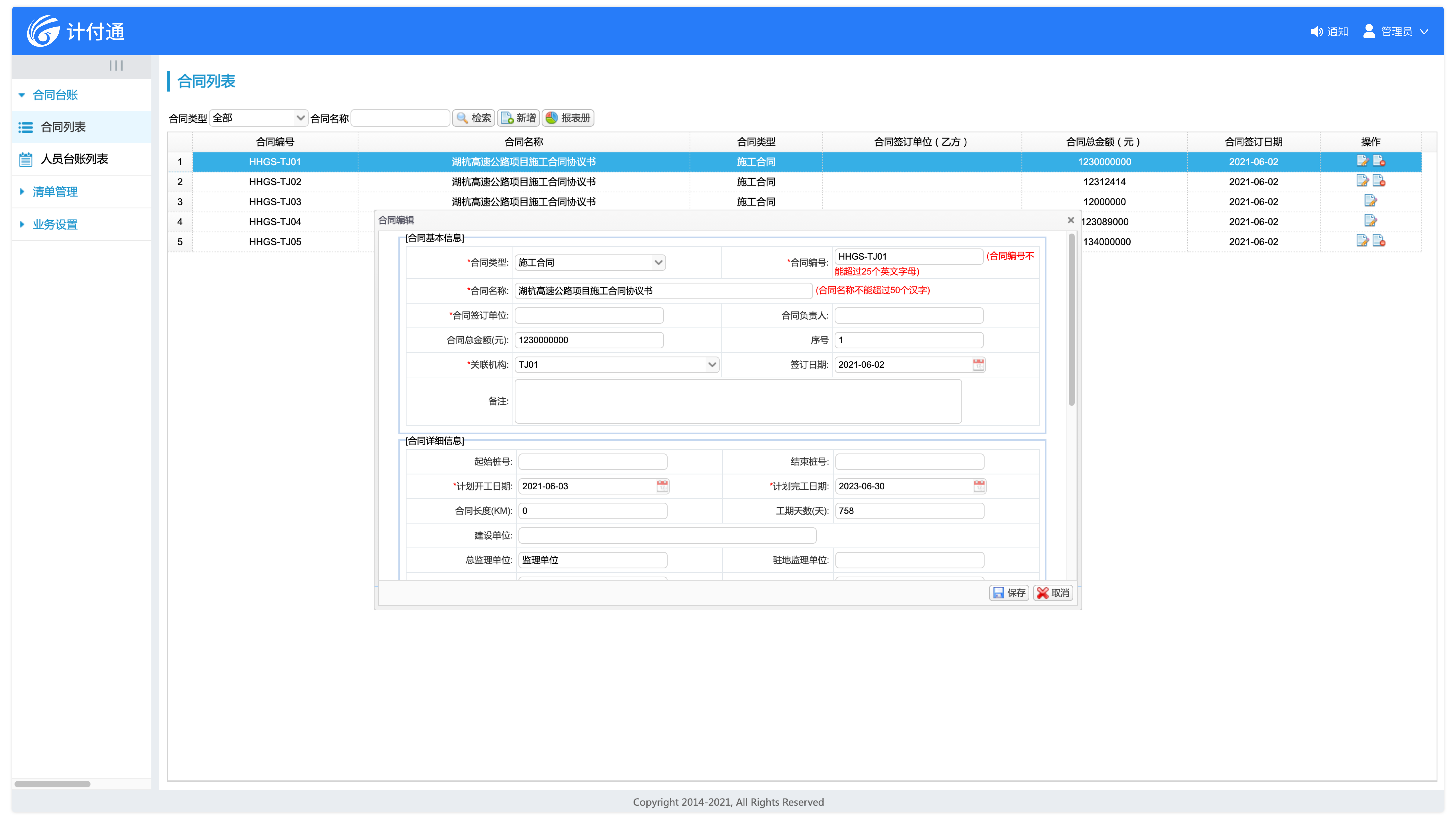 合同管理基本信息詳盡,約束條款中內(nèi)置各類計(jì)量依據(jù),是整個(gè)計(jì)量支付業(yè)務(wù)的源頭。